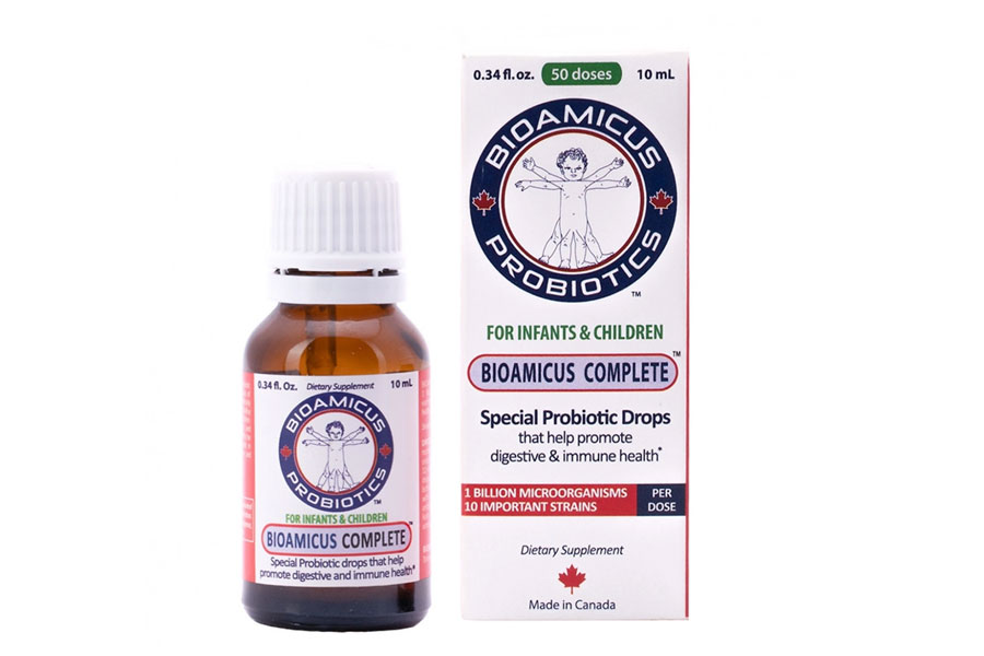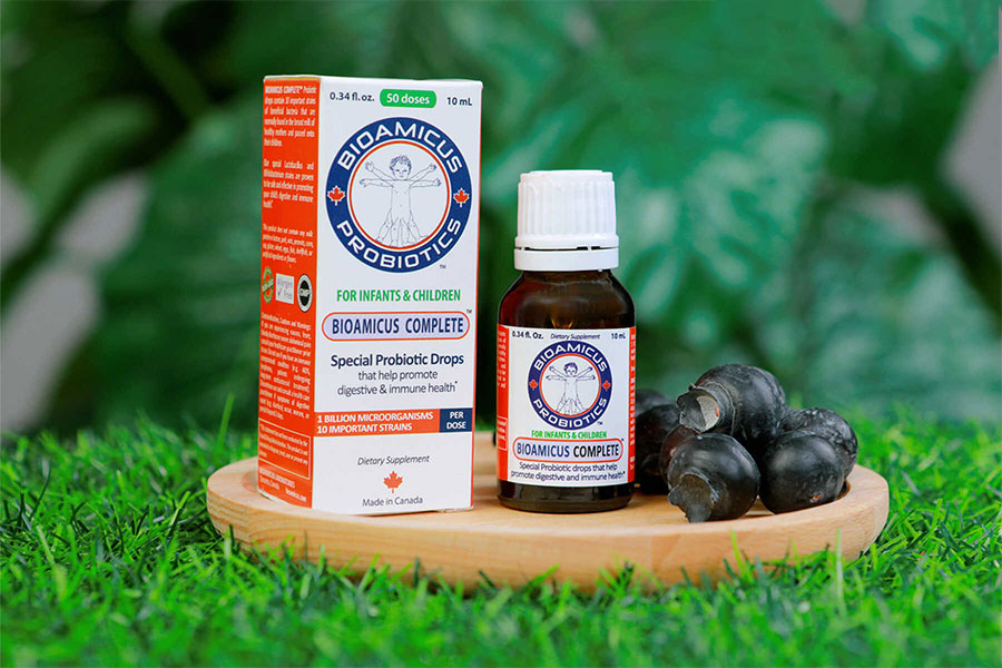 Men vi sinh 10 chủng BioAmicus Complete đầu tiên và duy nhất hiện nay được nhập khẩu nguyên chai từ Canada. Được ví như hệ vi sinh đường ruột thu nhỏ với công thức đột phá chứa 10 chủng lợi khuẩn cần thiết có mặt ngay trong đường ruột của trẻ là Lactobacillus và Bifidobacteria. Mỗi ngày chỉ 5-10 giọt không chỉ đơn thuần giúp trẻ cải thiện hiệu quả tình trạng biếng ăn, kém hấp thu và rối loạn tiêu hóa mà còn tăng cường sức đề kháng giúp trẻ giảm ốm vặt, giảm tỷ lệ sử dụng kháng sinh.